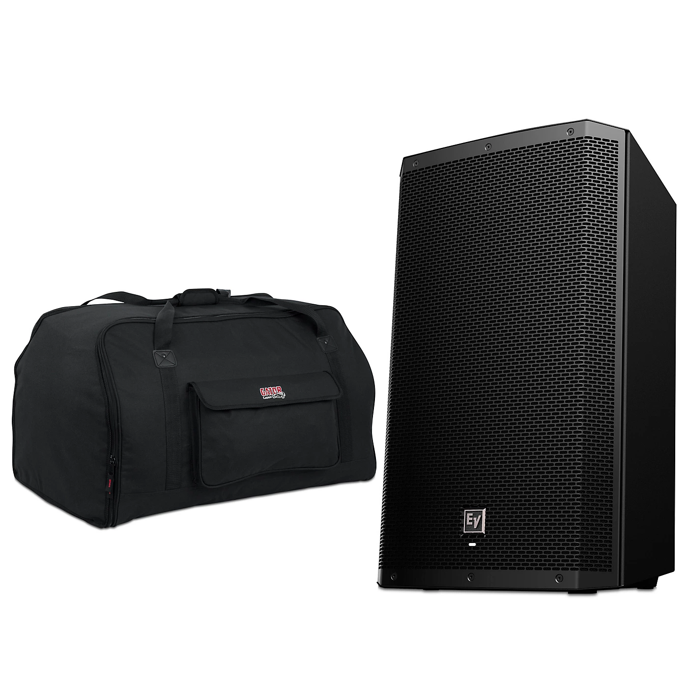 This live sound PA package combines high-tech powered speakers with protective speaker tote bags. You’ll be ready to take the stage or rock your next mobile DJ gig in style with these full-range, 2-way powered loudspeakers. They’re powered by efficient Class-D amplifiers. Your audience will appreciate the deep, rich bass response and clear vocals and highs. Thanks to the rugged, padded tote bags, your valuable powered PA speakers will be protected from scratches, dents, dirt and moisture. EV ZLX-15BT 1,000W 15” Powered Speaker