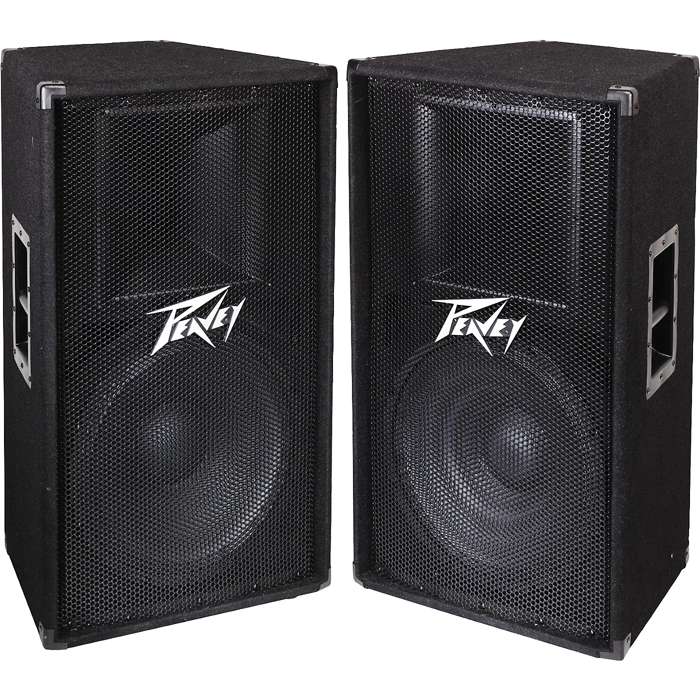 This great package deal includes:Two Peavey PV115 2-Way 15″ Speaker Cabinets (model 00572150)Peavey breaks the price barrier with PV115 2-Way 15″ Speaker Cabinets, road-rugged cabs loaded with a 15″ woofer and sweet-sounding horn. With 400W program and 800W peak handling, 56Hz-20kHz frequency response, and 96dB (2.83V) sensitivity, they’re the right enclosure for cash-strapped musicians who need night-in and night-out reliable performance.
